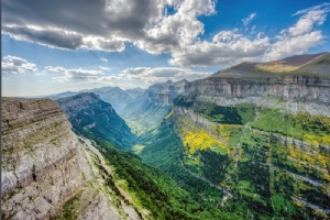 Lunes 10 de agosto: Plana Canal – San Vicenda – Grau del Foratiello – La Pardina – Nerín. Desde Bestué nos desplazaremos en vehículo hasta Plana Canal, lo que nos evitará tener que deshacer parte del recorrido del día anterior y nos quitará 7 kilómetros de pistas y 650 metros de desnivel positivo, que convertirían la etapa en muy exigente. Una vez en Plana Canal avanzamos hacia el norte por un camino cómodo que nos permite ir disfrutando de excelentes vistas sobre los cortados de Añisclo y del Monte Perdido. Superamos el refugio de San Vicenda y vamos en busca del Grau del Foratiello, donde una espectacular bajada, en la que habremos de ir con precaución, nos permite alcanzar el fondo del Cañón de Añisclo. Una vez en el fondo del cañón continuamos garganta abajo junto al río Bellós por un bosque de hayas hasta La Ripareta, donde nos desviamos para comenzar el ascenso del Barranco de La Pardina, con un tramo inicial bastante pendiente. Alcanzadas las planas de Añisclo y Cuello Arenas ya sólo nos resta una última bajada, cómoda y rápida, hasta Nerín, donde está previsto alojarnos.